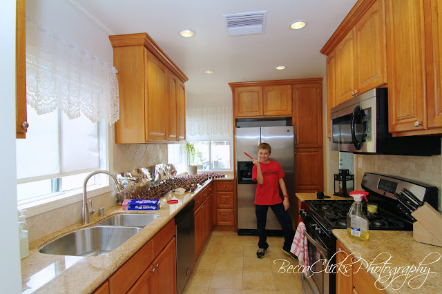 Us trying to clean up our HUGE mess that we always make. I'm sure Jake LOVES when we are doing our creations...right Jake? ;) But, we sure have a good time. Love you Adam!